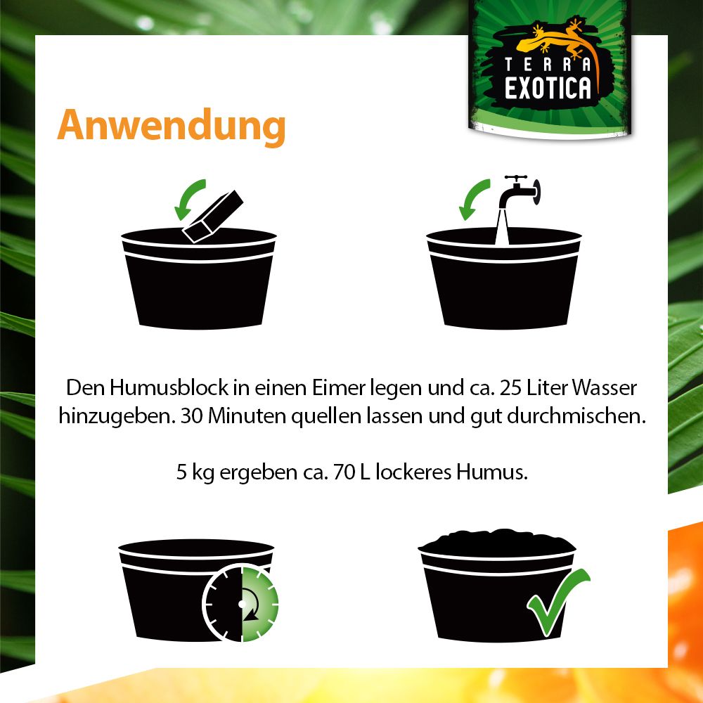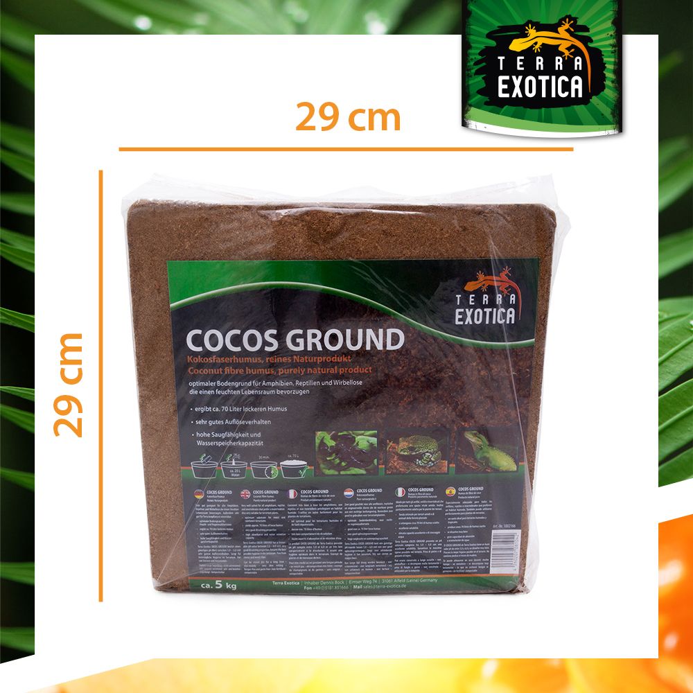 Der Terra Exotica Cocos Ground – Fein ist ein 100 % natürliches Substrat aus gepressten Kokosfasern und bildet den idealen Bodengrund für Feucht- und Regenwaldterrarien. Mit Wasser aufgequollen ergibt der Block ca. 75 Liter lockeren Humus, der sich hervorragend für Amphibien, Reptilien und Wirbellose eignet, die einen feuchten Lebensraum bevorzugen.