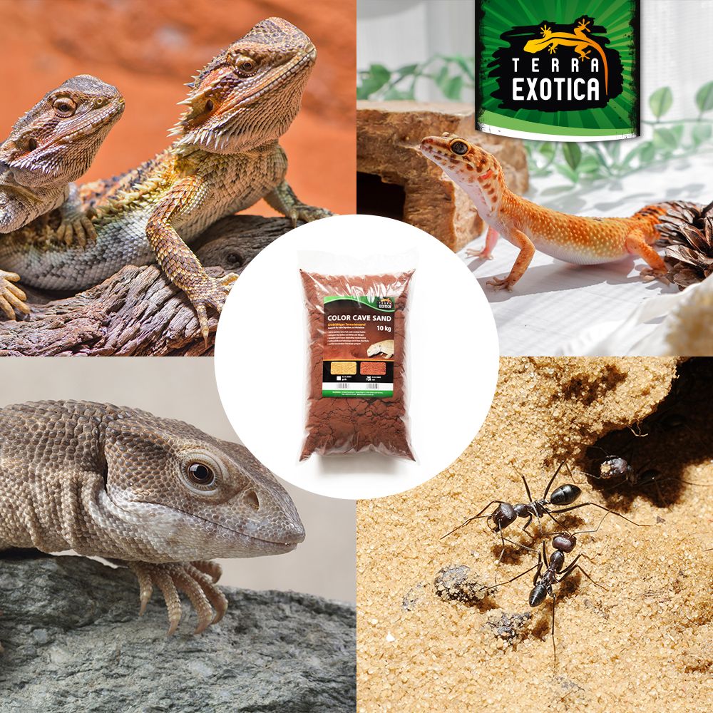 Der Terra Exotica Color Cave Sand – Rot ist ein 100 % natürliches Substrat, das speziell für grabende Reptilien, Wirbellose und Kleinsäuger entwickelt wurde. Ohne Farb- oder Zusatzstoffe ermöglicht der Sand das Anlegen von Höhlen, Gängen und Gräben, wodurch das natürliche Grabverhalten der Tiere gefördert wird.