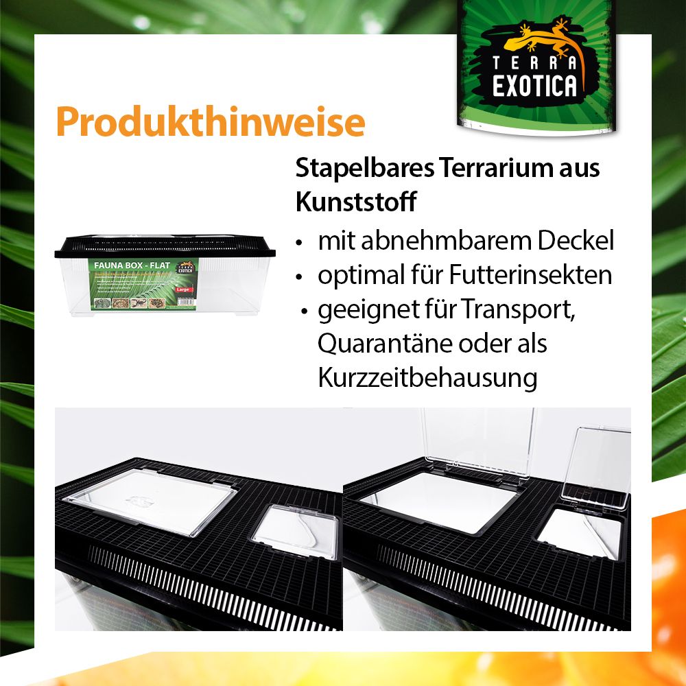 Geeignet als Kurzzeitbehausung für Reptilien, Amphibien, Mäuse und Insekten