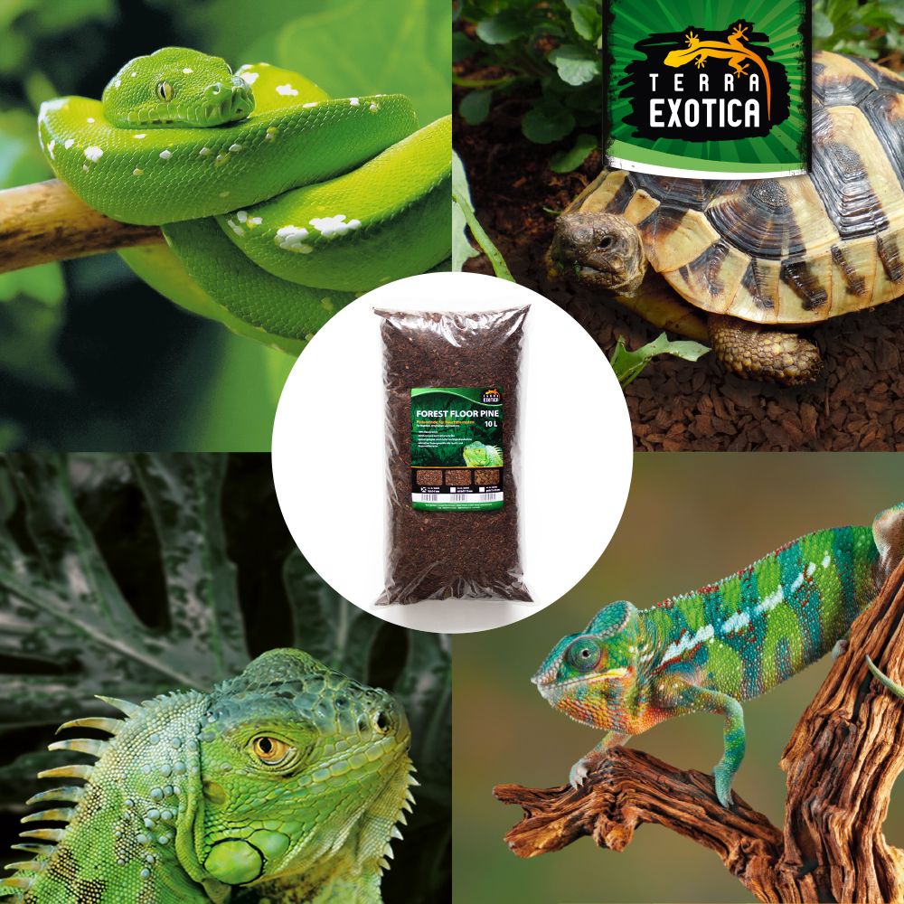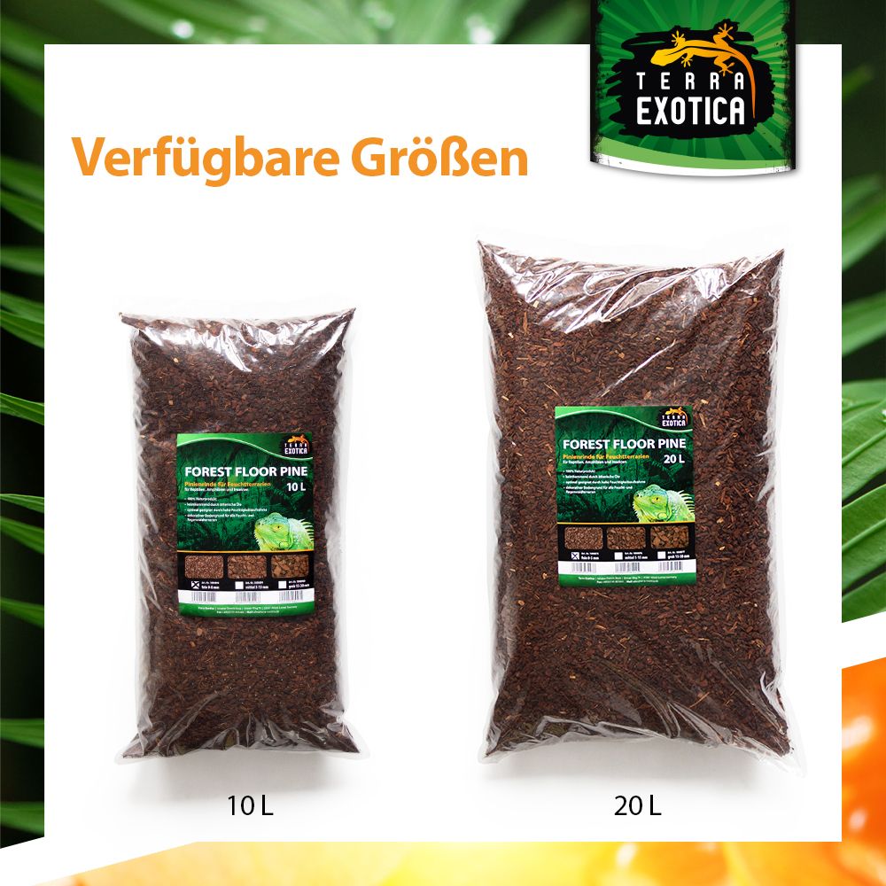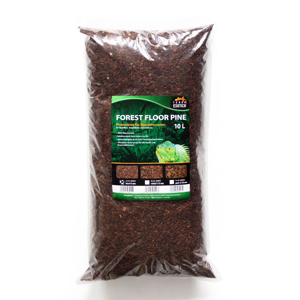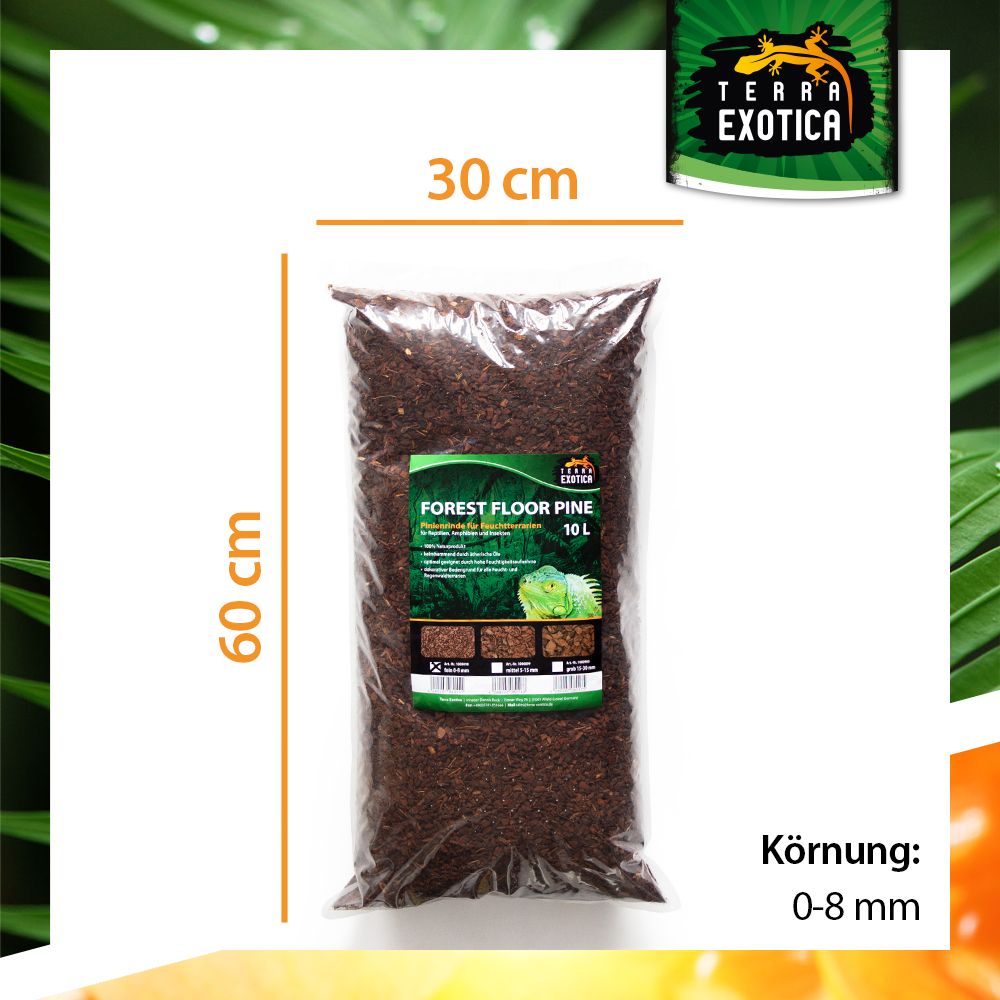 Terra Exotica Forest Floor Pine – Fein ist ein 100 % natürliches Substrat aus fein gesiebter französischer Pinienrinde (0–8 mm Körnung), ideal als Bodengrund für Feucht- und Regenwaldbewohner. Es unterstützt ein gesundes, humides Klima im Terrarium und trägt zur natürlichen Luftfeuchtigkeit bei.