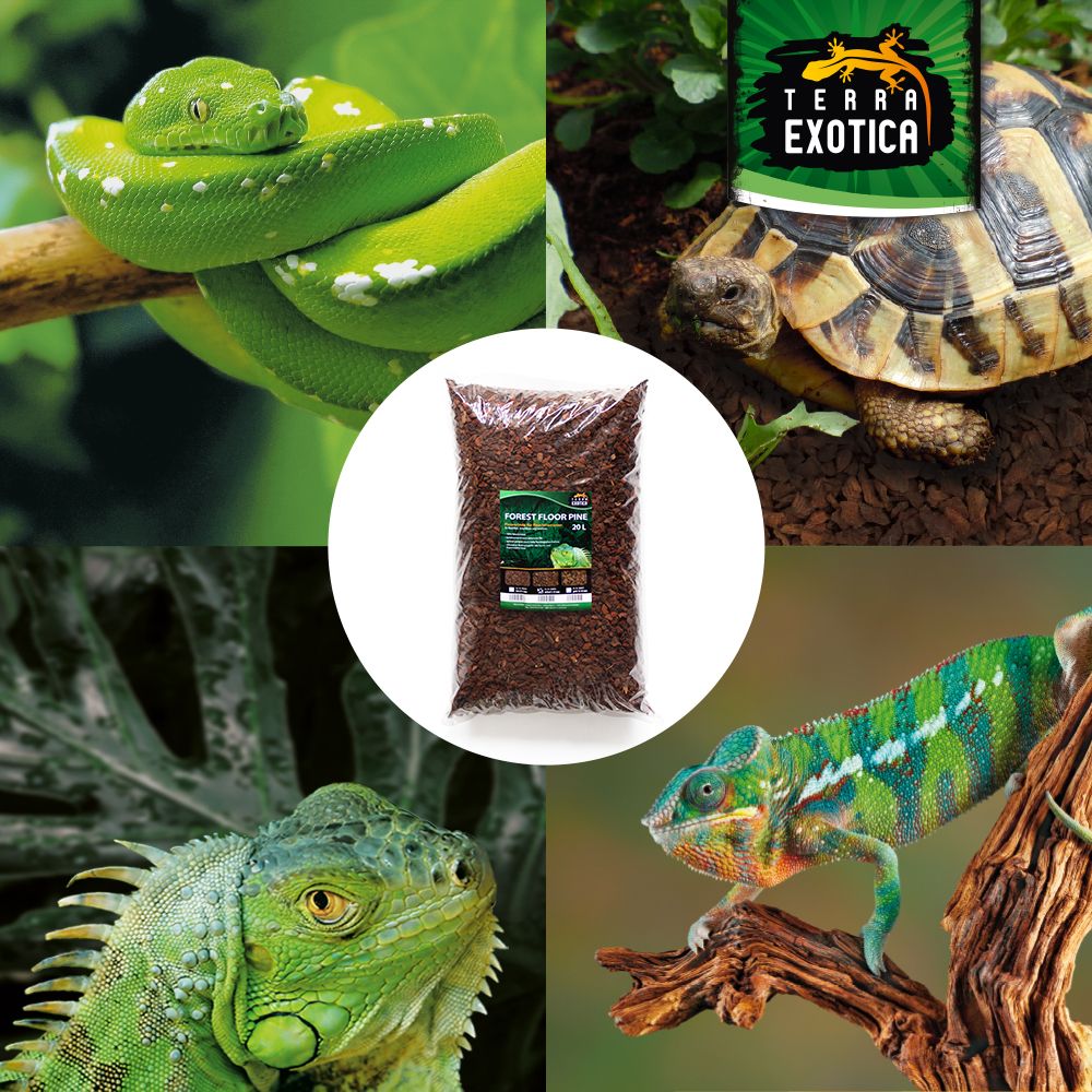 Terra Exotica Forest Floor Pine – Mittel ist ein 100 % natürliches Substrat aus fein gesiebter französischer Pinienrinde (0–8 mm Körnung), ideal als Bodengrund für Feucht- und Regenwaldbewohner. Es unterstützt ein gesundes, humides Klima im Terrarium und trägt zur natürlichen Luftfeuchtigkeit bei.