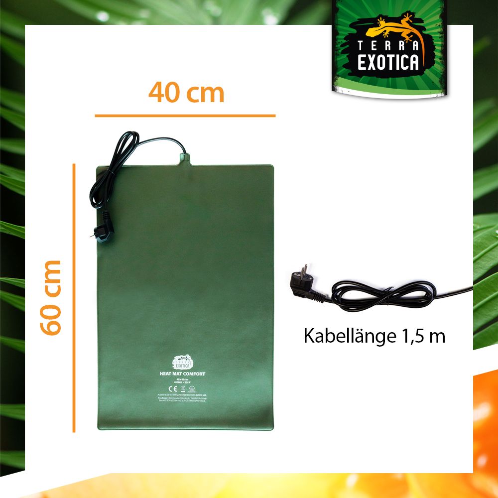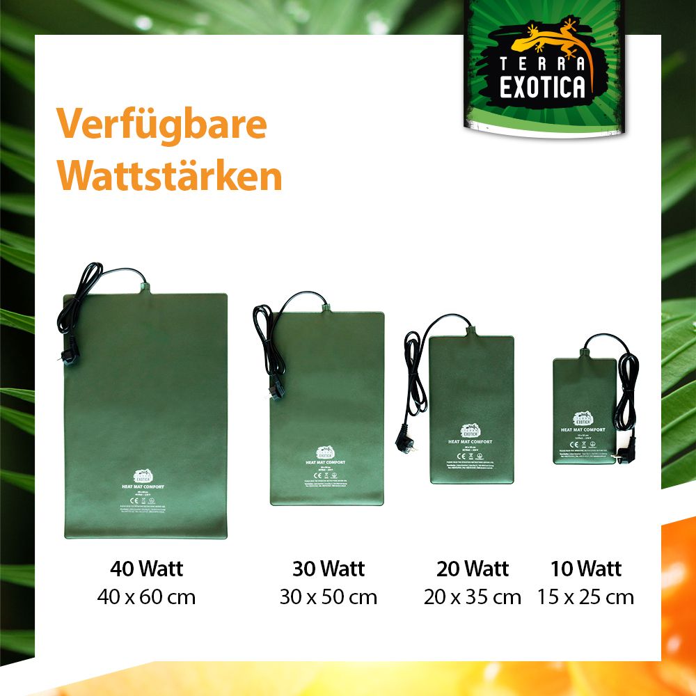Die Comfort Heizmatte ist eine zuverlässige und energiesparende Grundheizung für Terrarien, die den durch die Sonne aufgeheizten Bodengrund natürlich simuliert. Sie sorgt für eine gleichmäßige Wärmeverteilung und erzeugt langwellige Infrarotstrahlung, die besonders sanft und effektiv wirkt – ideal für die meisten Terrarientiere sowie zur Pflanzenzucht.