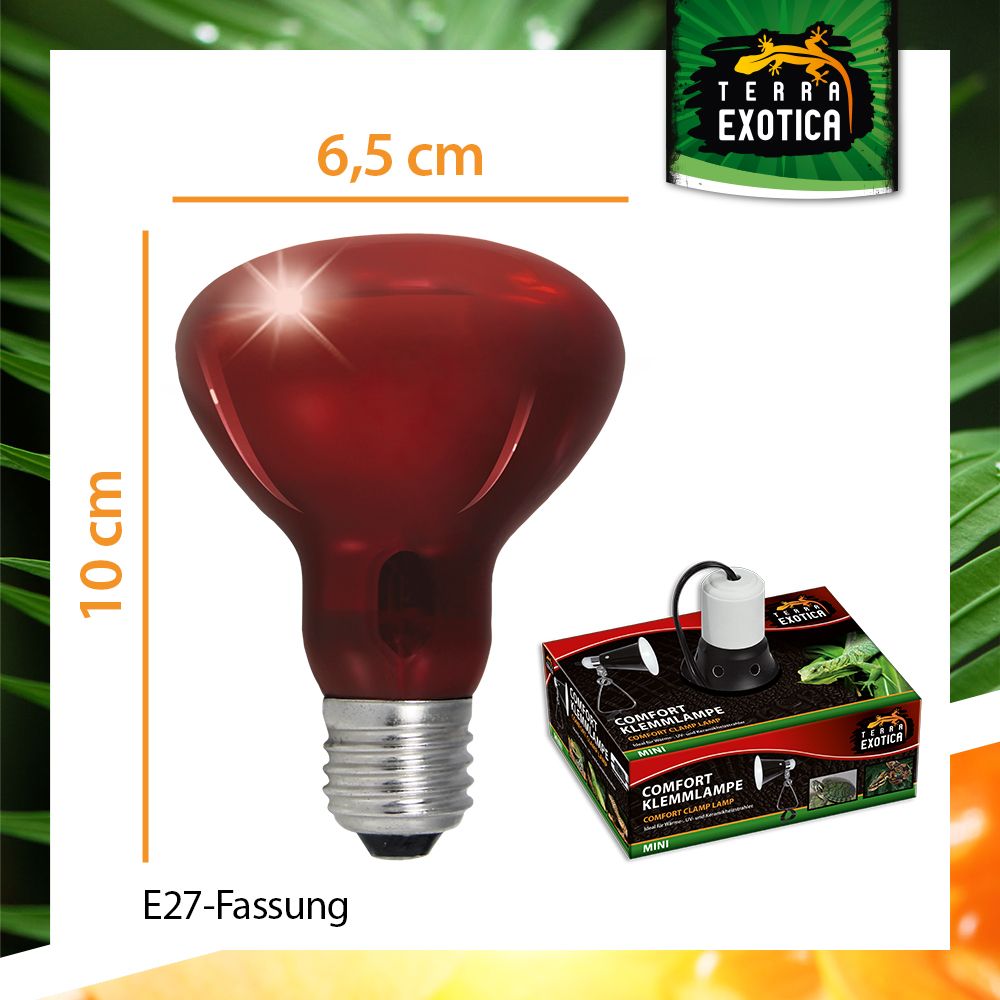 Der Infra Red Infrarot Reflektorstrahler ist eine zuverlässige Wärmequelle für Terrarien und eignet sich ideal zur Beobachtung nachtaktiver Tiere. Er spendet gleichmäßige Infrarotwärme, ohne den natürlichen Tag-Nacht-Rhythmus zu stören, und unterstützt so die Aktivität, Verdauung und das allgemeine Wohlbefinden deiner Tiere.