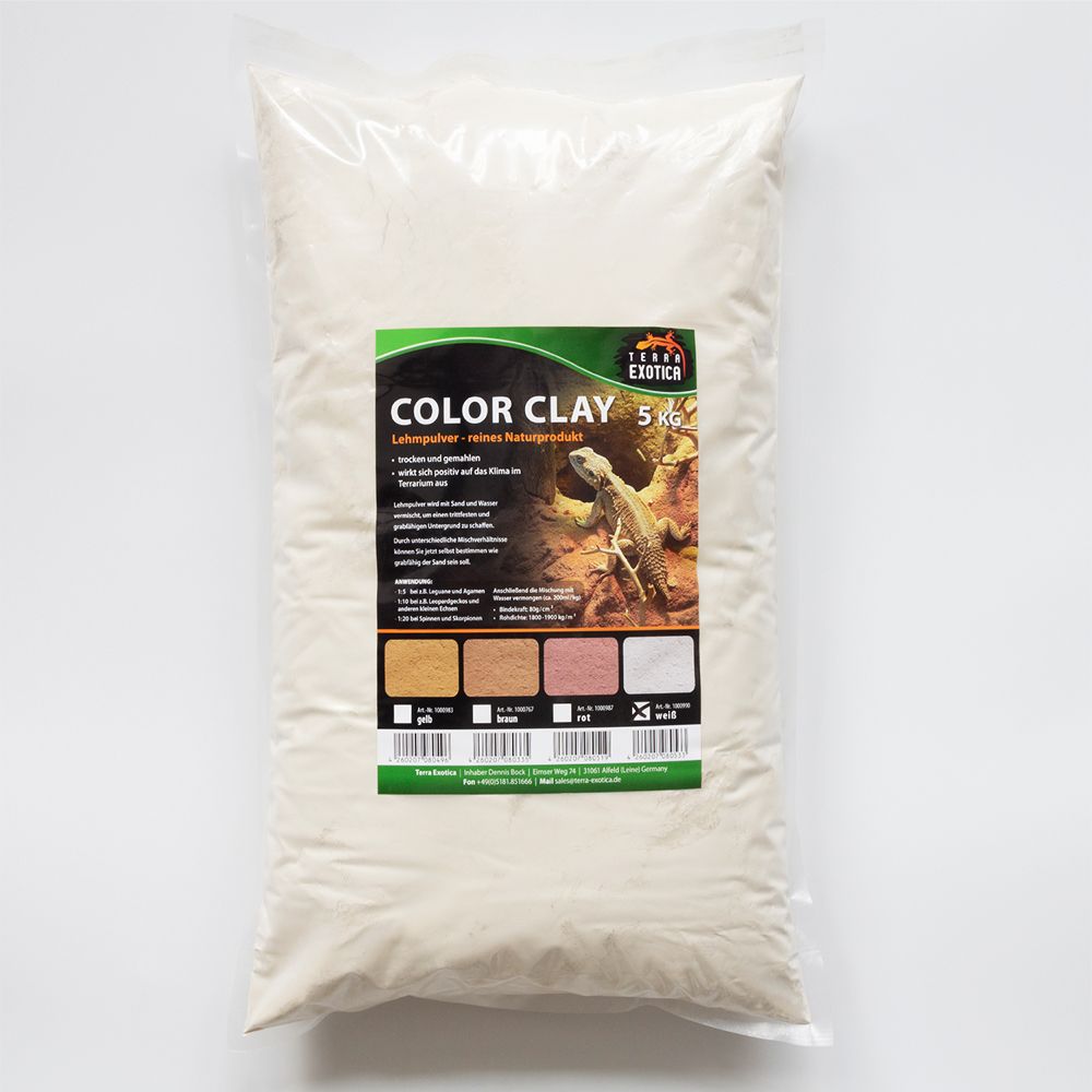 Das Terra Exotica Lehmpulver – Weiß ist ein reines Naturprodukt, das als Bodenzusatz für Terrarien dient. Es ist trocken und fein gemahlen und unterstützt ein natürliches Klima im Terrarium. In Kombination mit Sand und Wasser entsteht ein trittfester, grabfähiger Untergrund, der sich optimal an die Bedürfnisse verschiedener Reptilien und Wirbellose anpassen lässt.