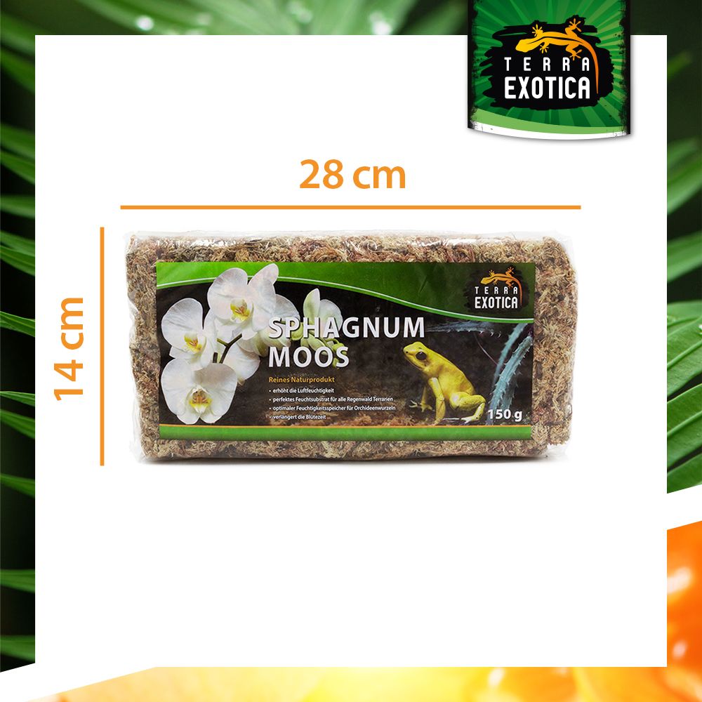 Das Moos erhöht die Luftfeuchtigkeit im Terrarium, dient als Feuchtigkeitsspender für Pflanzenwurzeln (z. B. Orchideen) und verlängert die Blütezeit. Dank seiner antibakteriellen und antibiotischen Eigenschaften ist es hygienisch, frei von Düngemitteln und Pestiziden, und eignet sich zudem als Eiablagesubstrat für Reptilien oder zur Überwinterung von Terrarientieren.